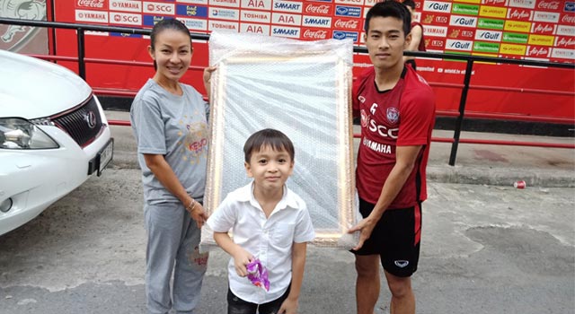 แฟนคลับตัวยงของ สารัช อยู่เย็น กองกลางกัปตันทีมของ เอสซีจี เมืองทอง ยูไนเต็ด มอบยันต์เจ้าคุณธงชัยให้สิ่งศักดิ์สิทธิ์คุ้มครองปกป้องให้ผ่านช่วงเวลาที่แย่ๆ ไปให้ได้
