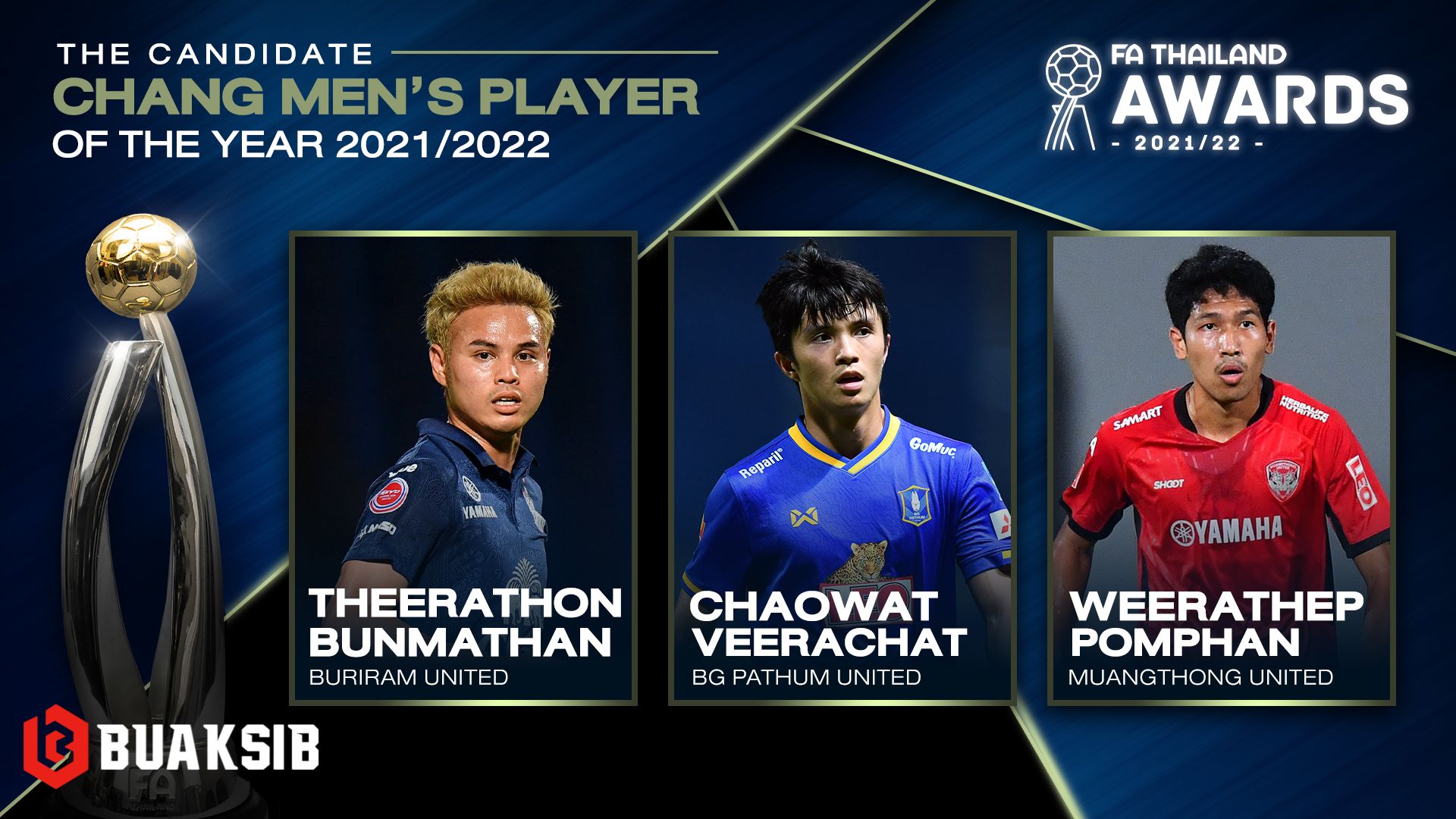 สมาคมฯ ได้ประกาศรายชื่อ 3 นักกีฬาชายที่มีชื่อเป็นแคนดิเดต รางวัล Chang Men’s Player of the Year ออกมาเป็นที่เรียบร้อยแล้วประกอบไปด้วย