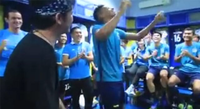 อย่างฮา เมื่อ พงษ์สิทธิ์ คำภีร์ เข้าให้กำลังใจทัพนักเตะ โลมาน้ำเงิน ถึงห้องแต่งตัว ก่อนจะลงอบอุ่นร่างกายในเกมพบ ราชบุรี มิตรผล เอฟซี เมื่อวันเสาร์ที่ผ่านมา