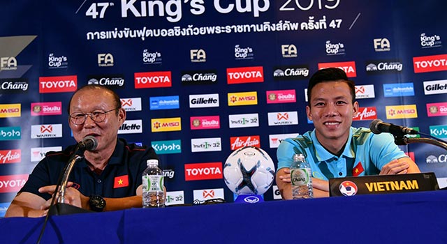 ปาร์ค ฮังซอ และ ชู ง็อกไฮกัปตันทีมชาติเวียดนาม ร่วมแถลงข่าวก่อนการแข่งขันฟุตบอลคิงส์คัพ ครั้งที่ 47 ที่สนามช้างอารีน่า จ.บุรีรัมย์ โดยก่อนจะตอบคำถามสื่อ กุนซือ ทีมชาติเวียดนาม ขอแก้ข่าวที่ว่า ไม่อยากเดินทางมาแข่งขัน คิงส์คัพ ว่าไม่เป็นความจริง เขาใฝ่ฝันอยากจะลงเตะคิงส์คัพมาตั้งแต่สมัยเป็นนักเตะ