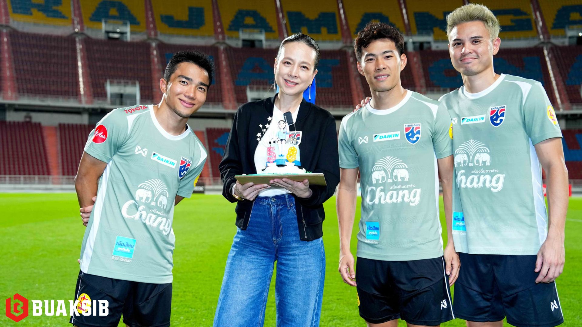 “ทีมชาติไทย เราจะสู้กันเต็มที่ครับ ขอให้ทุกคน ทุกท่าน เป็นกำลังใจให้กับเราด้วยครับ ก็สุขสันต์วันเกิด มาดามแป้ง อีกครั้งครับ”