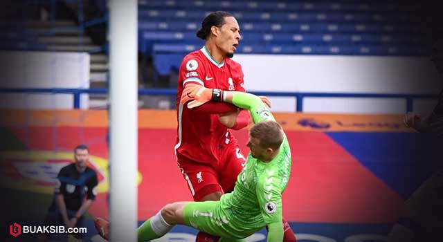 เวอร์กิล ฟาน ไดจค์ นักเตะทีมชาติฮอลแลนด์ ถูก จอร์แดน พิคฟอร์ด กระโดดใส่ขาคู่หนีบเข่าที่หัวเข่าในขณะที่ยืนปักขาอยู่ซึ่งฝ่ายหลังรอดตัวไม่ถูกลงโทษเนื่องจากเป็นลูกล้ำหน้า
