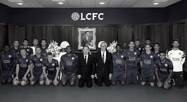 คุณวิชัย ศรีวัฒนประภา ประธานสโมสร เลสเตอร์ ซิตี้ และประธานกรรมการ กลุ่มบริษัท คิง เพาเวอร์ พร้อมด้วยผู้จัดการทีมและเหล่านักเตะ ร่วมถวายอาลัยด้วยสำนึกในพระมหากรุณาธิคุณพระบาทสมเด็จพระปรมินทรมหาภูมิพลอดุลยเดช ณ สนามคิง เพาเวอร์ สเตเดี้ยม ประเทศอังกฤษ ที่ผ่านมา
