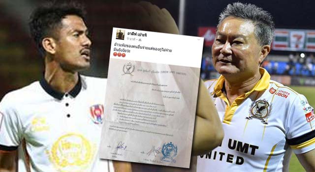 อาลีฟ เปาะจิ มิดฟิลด์นรา ยูไนเต็ด ทีมในศึกยูโร่ เค้ก ลีก โปร (ไทยลีก 3) งัดหลักฐานโชว์ หลังยังไม่ได้เงินชดเชยจาก อุบล ยูเอ็มที ยูไนเต็ด อดีตต้นสังกัดเก่า และเตรียมส่งเรื่องร้องต่อสมาคมฟุตบอลแห่งประเทศไทยฯ