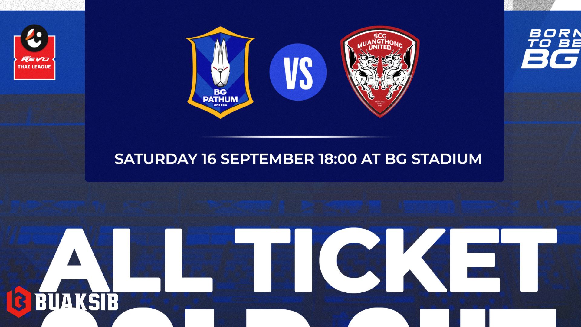 บีจี ปทุม ยูไนเต็ด ยืนยันว่า บัตรเข้าชมเกมของทีมเหย้า ในเกมที่เปิดบ้านพบกับ เมืองทอง ยูไนเต็ด ถูกจำหน่ายหมดแล้ว
