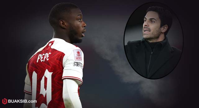 มิเกล อาร์เตต้า กุนซือของสโมสร “ปืนใหญ่” อาร์เซน่อล ยกมือเตรียมพร้อมให้ความช่วยเหลือ นิโคลัส เปเป้ ดาวเตะค่าตัวแพงสุดของสโมสรให้สามารถแจ้งเกิดเต็มตัวบนเวทีพรีเมียร์ลีก