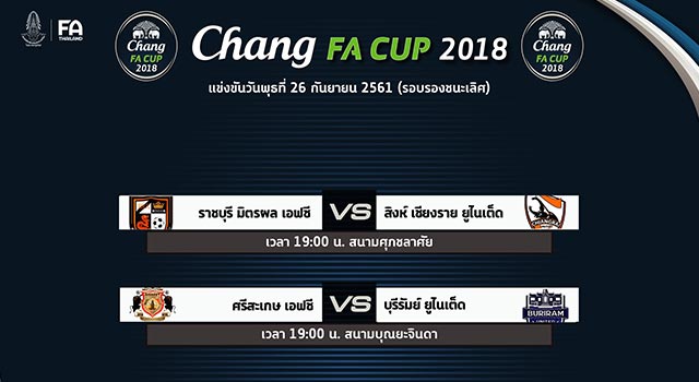 เมื่อวันที่ 23 สิงหาคม ที่ผ่านมา การจับสลากประกบคู่ฟุตบอล ช้างเอฟเอ คัพ 2018 รอบรองชนะเลิศ ที่ห้อง เมต้า 1 ราชพฤกษ์คลับ เวลา 14.00 น.