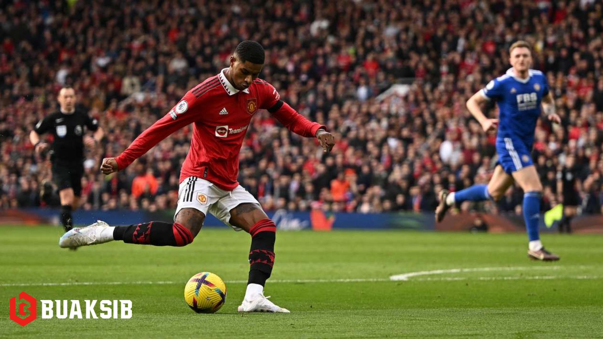 เริ่มเกมมาเป็นเลสเตอร์ ที่บุกและเกือบได้ประตูหลายครั้งแต่ยังติดเซฟ ดาบิด เด เกอา และนาที 25 เป็นบรูโน แฟร์นันด์ส ที่ดีดให้ มาร์คัส แรชฟอร์ด หลุดเดี่ยวก่อนยิงเข้าไปให้ แมนฯยู นำก่อน 1-0 และเป็นประตูเดียวในครึ่งแรก