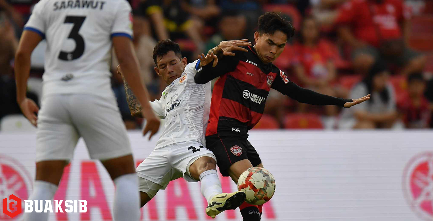 น.72 เมืองทองฯ ได้ลูกฟรีคิก บริเวณหน้ากรอบเขตโทษฝั่งซ้าย ก่อนจะเป็น วิลเลี่ยน พ็อพพ์ รับหน้าที่สังหาร ปั่นบอลพุ่งแรงไปที่เสาไกล นนท์ ม่วงงาม พยายามพุ่งเซฟแต่ไม่ทัน บอลเสียบสามเหลี่ยมเข้าไปอย่างสุดสวย เมืองทองฯ ตีเสมอ 1-1
