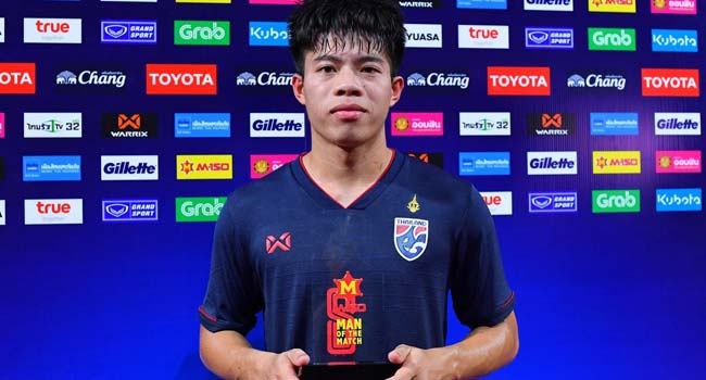 จอมทัพจากเชียงราย ยูไนเต็ด คว้า แมน ออฟ เดอะ แมตช์ ในเกม ที่ช้างศึก เฉือนชนะ ยูเออี 2-1 หลังยิงและแอสซิสต์ อย่างละหนึ่ง ช่วยให้ทีมนำเป็นจ่าฝูงของกลุ่มจี ในศึกฟุตบอลโลก 2022 รอบคัดเลือก โซนเอเชีย
