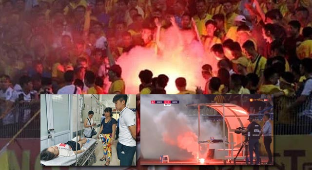 เหตุการณ์ดังกล่าวเกิดขึ้นจากการที่แฟนบอลทีมเยือน จุดพลุแฟลร์ตลอดเกมการแข่งขัน และมีการขว้างปาลงมาในสนาม ทำให้นักข่าวสาวที่ชื่อ Huyen Anh ถูกลูกหลงพลุไฟเข้าที่บริเวณต้นขา ต้องนำตัวส่งโรงพยาบาลเป็นการด่วน นอกจากนี้ แฟนบอลของทีมเยือนยังถูกจับภาพโดยกล้องวงจรปิด ว่ามีการทำร้ายเจ้าหน้าที่ตำรวจหนึ่งราย ซึ่งถูกนำตัวส่งโรงพยาบาลหลังจบการแข่งขันเช่นกัน