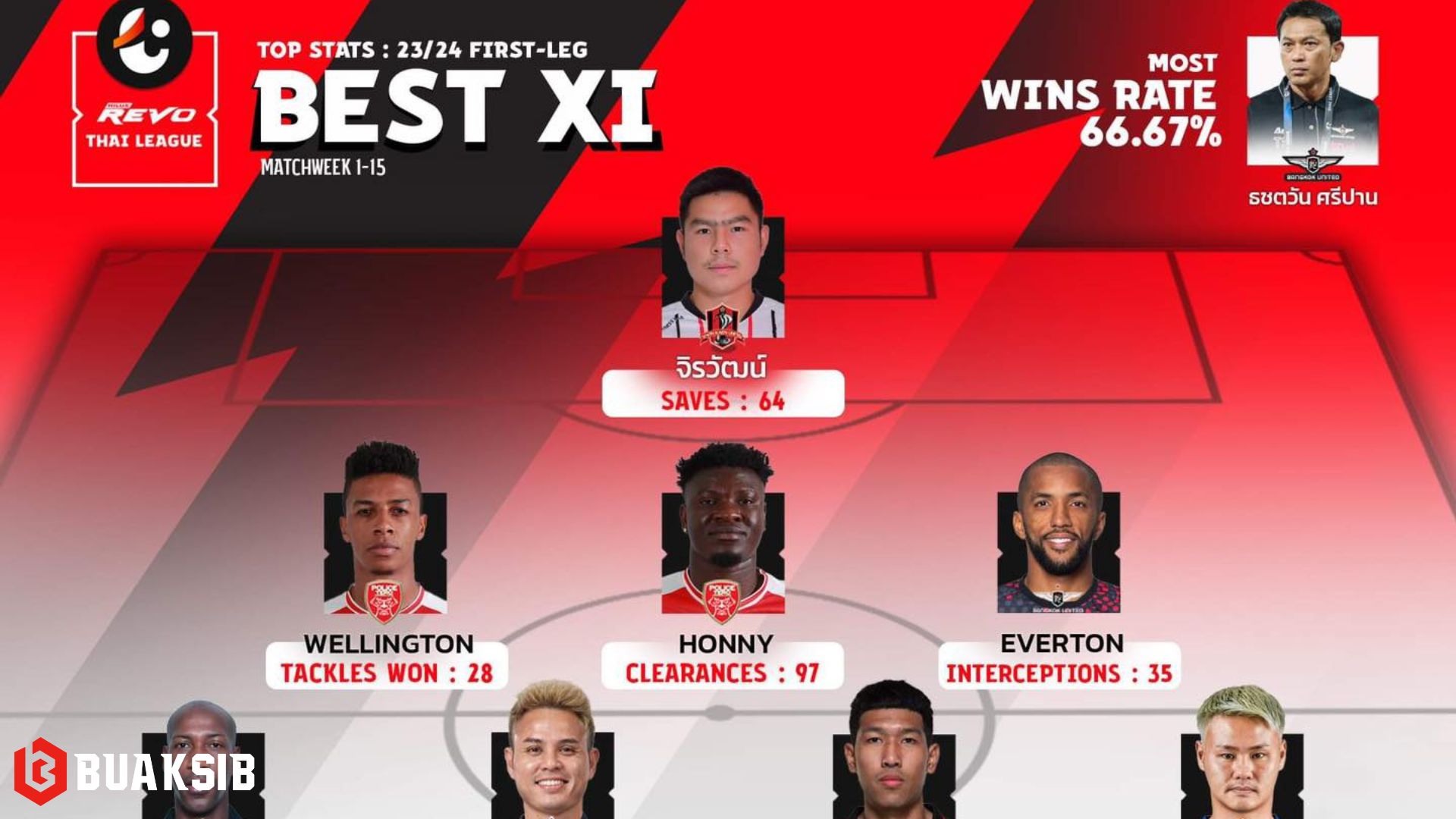 ไทยลีก จัดการจัด 11 ตัวจริงยอดเยี่ยมประจำ เลกแรก ของฤดูกาล 2023/24 โดยเลือกแต่ละตำแหน่งจากสถิติสำคัญ
