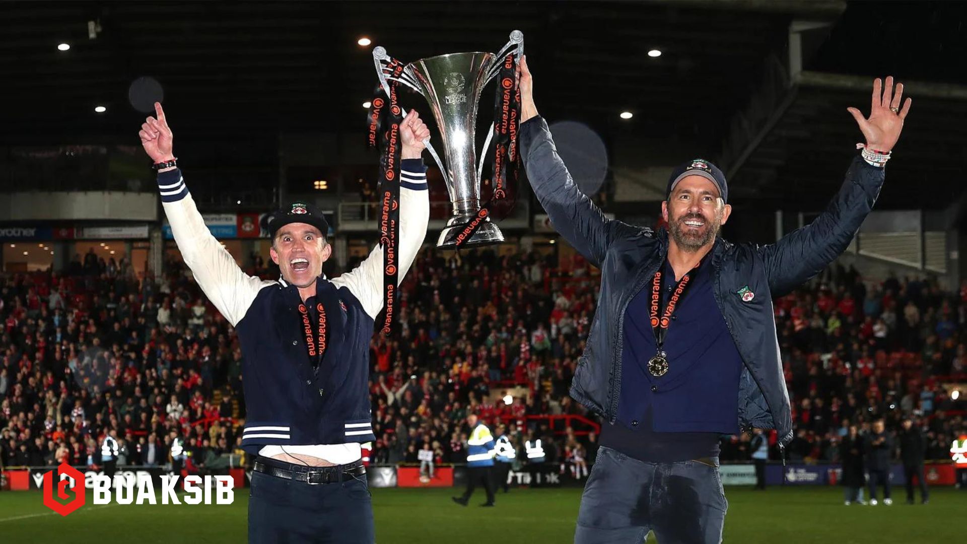 ซึ่งเมื่อคืนนี้ เร็กซ์แฮม เอาชนะ บอร์แฮม วู้ด การันดีการเลือนชั้นสู่ลีกทูหลังเล่นนอกลีกมานาน 15 ปี โดย เรย์โนลด์ส, แม็คเอลเฮนนี่ และ พอล รัดด์ (แอนท์แมน) เข้ามาชม
