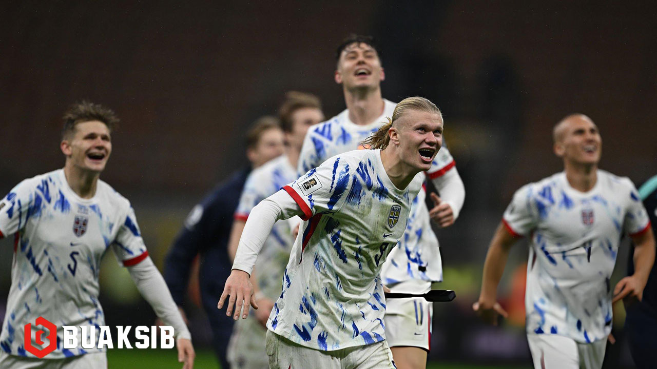 บรรดาขุนพล ทีมชาตินอร์เวย์ ต่างแสดงความยินดี หลังบุกชนะอิตาลีราบคาบ 4-1 และผ่านเข้ารอบสุดท้าย ฟุตบอลโลกเป็นครั้งแรกในรอบ 28 ปี