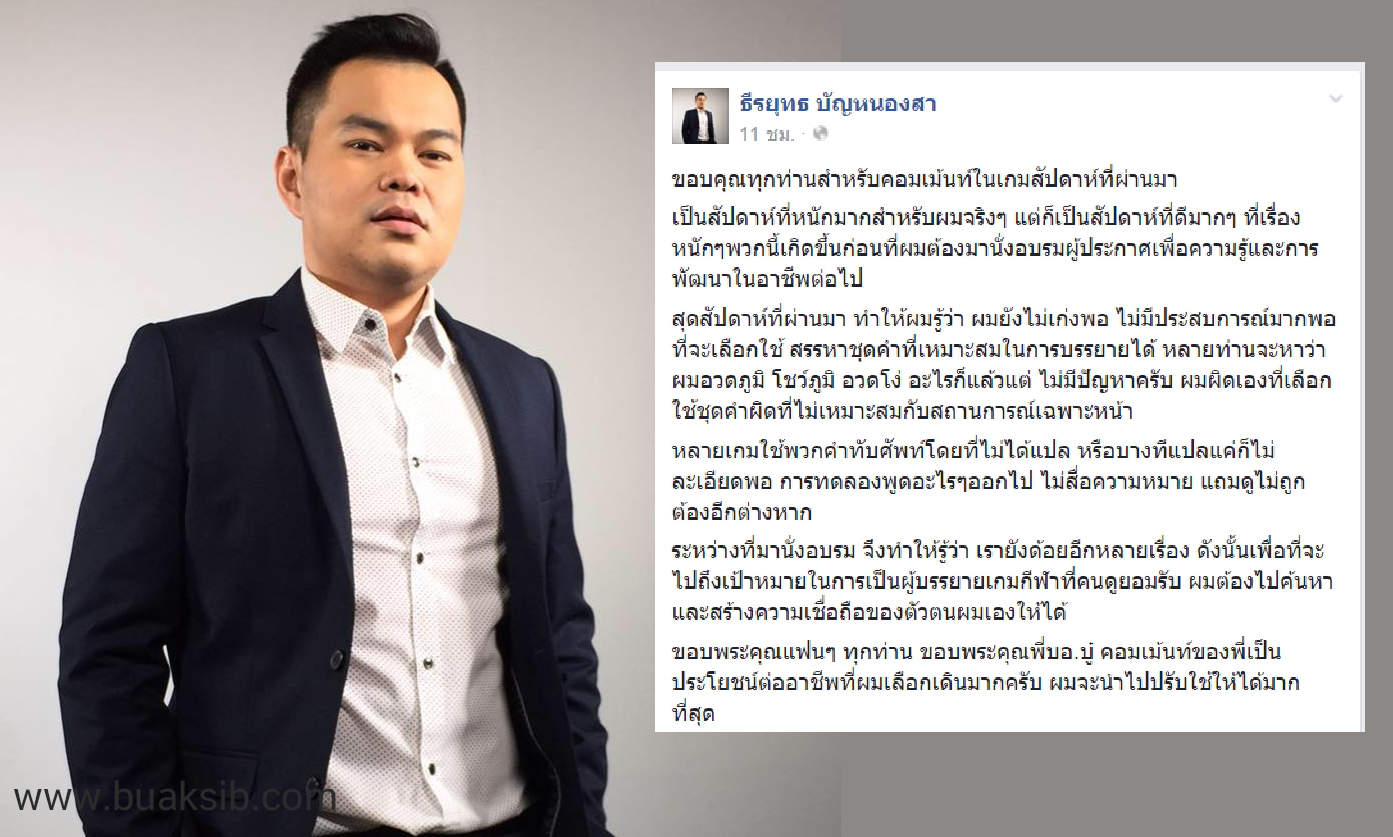 กลายเป็นที่ถกเถียงในสังคม เเละถูกนำไปล้อเลียน บางรายถึงกับต่อว่าในการใช้ภาษาที่ผิด กระทั้งล่าสุดทางผู้บรรยายเกมชื่อดัง ธีรยุทธ บัญหนองสา ได้ออกมาโพสต์เเฟนเพจของตนเองเพื่อขอโทษในข้อที่ผิดพลาด พร้อมกับขอปิดเเฟนเพจลงอย่างเป็นทางการ เนื่องจากไม่พร้อมที่จะถูก ด่า ลากไปสับบนพื้นที่สาธารณะ